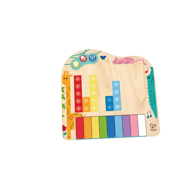 Hape 3in1 Dynamic Pixel Piano Musical Instrument Kids Toy Keyboard, Wooden Mini Piano Music Playset Music for Children, Piano Mode, Pixel Piano with Animal Sounds Mode, Learn with Lights Mode 3 Years+