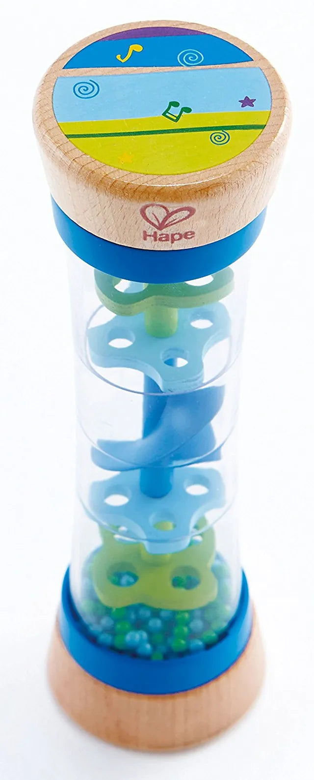 - BRIGHT COLORS: The shake and rattle rainmaker features bright red and yellow colors that will leave your little one in awe as the beads trickle up and down