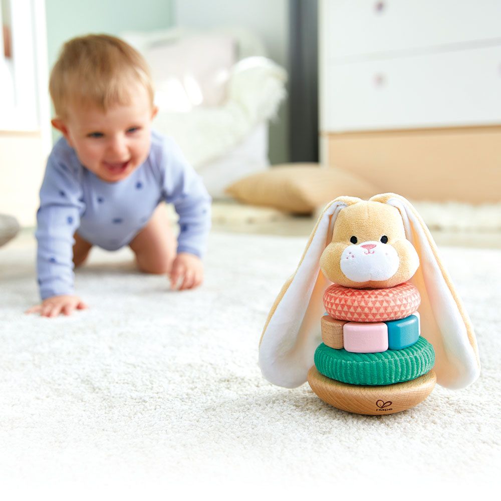 - FUN BUNNY STACKER: This learning tower encourages young minds to explore balance in a fun way. The friendly rabbit has different stackable rings. Your baby will enjoy placing them on the wobbly base for an enjoyable playtime experience!