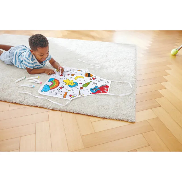 Hape Colour Me Art and Craft Apron | Multiple Time Use Apron , Brain Development activity | Mini Picassos, Water Proof Apron , Apron includes with 6 colour markers| Multicolor