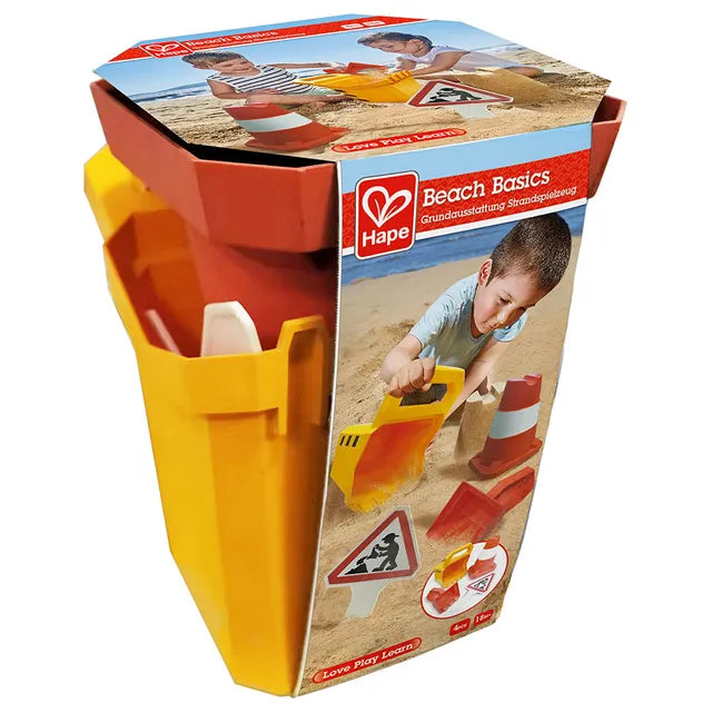 Hape Construction Sand Toy Set | Toy Set With Bucket, Shovel, Cone and Sign, For Children Ages 3+ Years