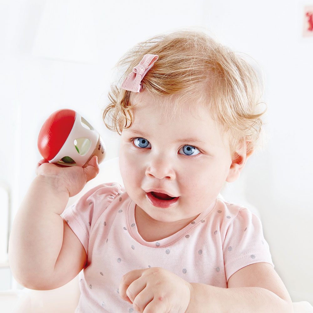 Roll this clever rattle away from you and it loops right back – a little like a boomerang. Easy for small hands to grasp, it has a pleasant-sounding bell inside.