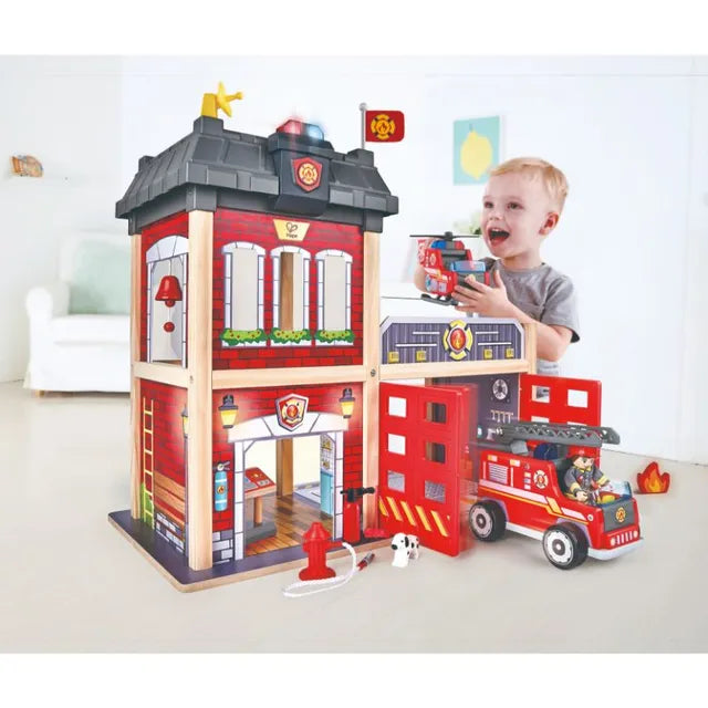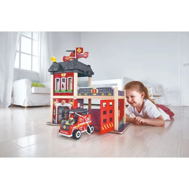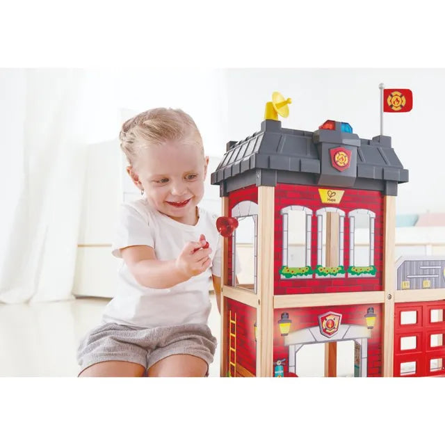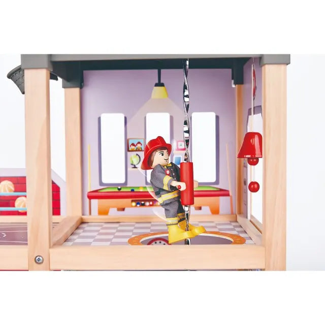 Hape Fire Station Playset| Wooden Dollhouse Kid’s Toy, Stimulates Key Motor Skills And Promotes Team Play