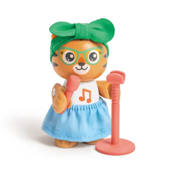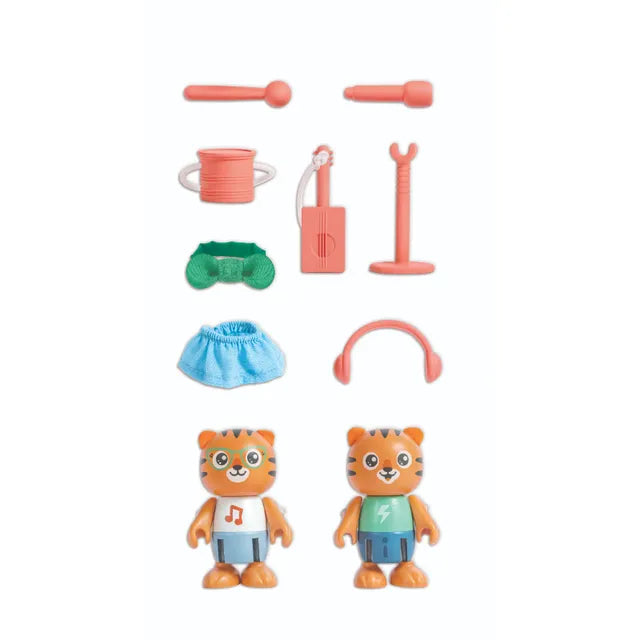 - PLENTY OF ACCESSORIES: This set includes two tiger figurines, two drumsticks, one drumset one microphone and stand, one guitar one pair of headphones, a skirt, a ribbon and an information leaflet.