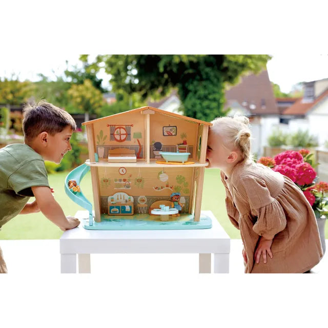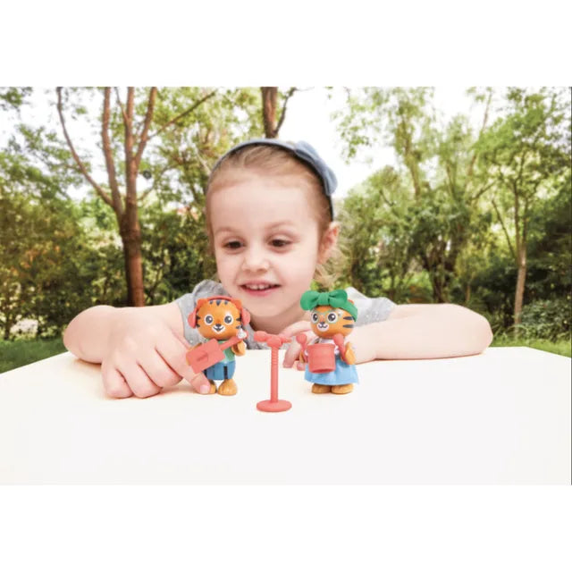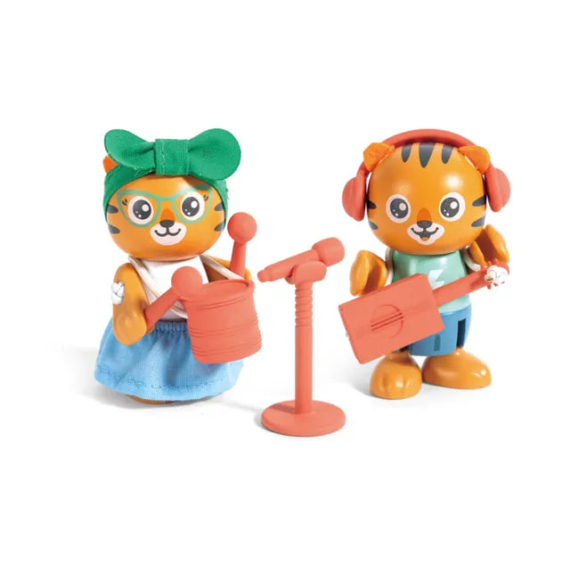Hape Green Planet Exporers Collection | Milo & Melody Tiger Figure Role Play with Accessories 11pcs | Can Sit, Stand and Hold instrument with their hands | Made of Bio-plastic and FSC-certified wood | Creativity | Perfect addtion to Playhouse | Sustainable Toys FSC Certified