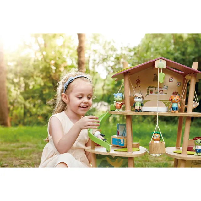 Hape Green Planet Exporers Collection | Sam & Pam Panda Figure Role Play with Accessories 9pcs | Can Sit, Stand and Hold Gadgets with their hands | Made of Bio-plastic and FSC-certified wood | Creativity | Perfect addtion to Playhouse | Sustainable Toys FSC Certified