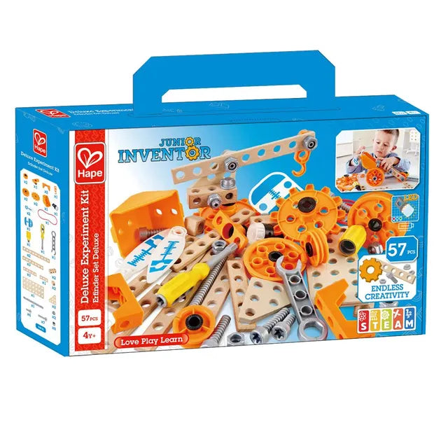 Deluxe Experiment Kit by Hape - Hape Junior Inventor Deluxe Experiment Kit | 57 Piece Construction Building Toys, STEAM Science Kit For Kids 4 Years And Up