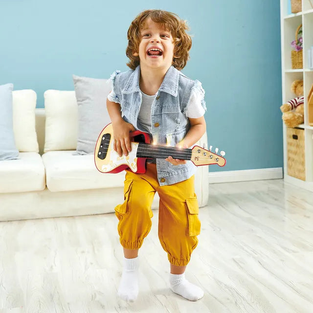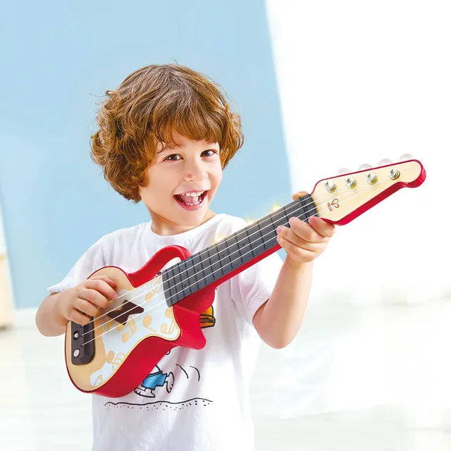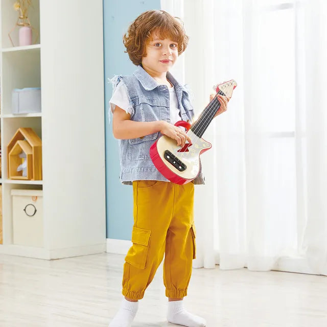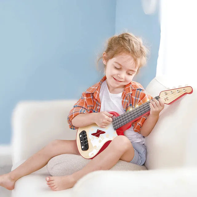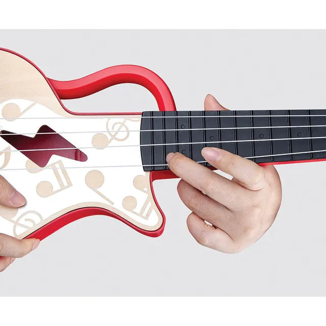 This instrument is designed with nylon strings that can be tuned - just like a real ukulele! This lightweight ukulele comes with a nifty handle on the body, making it easy for your little musician to carry around and take their music everywhere! It’s the perfect gift for kids three years and older.