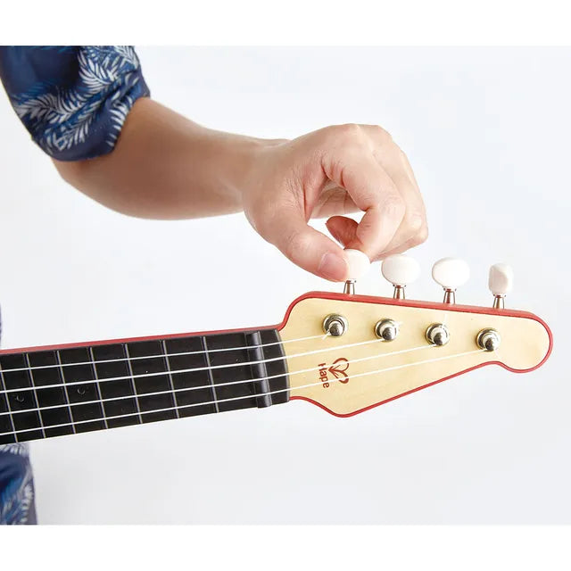 - ROCK-STYLE UKULELE: This rockin’ toy instrument will teach your little musician to play the ukulele in no time! This tunable ukulele comes with color-coded note stickers and a music book to aid in learning