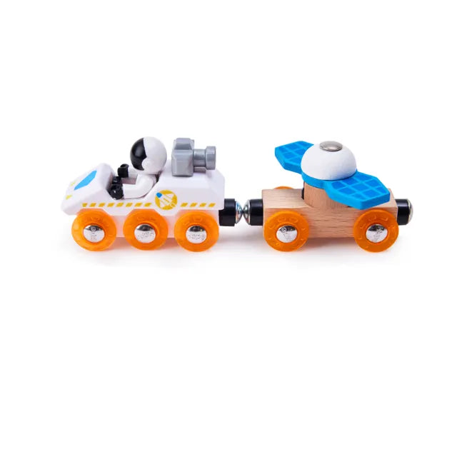 - VARIOUS VEHICLES: Explore various means of transportation, including a space train, satellite vehicle, and Mars exploration rover. The satellite car`s solar panel leaves can rotate for added engagement.