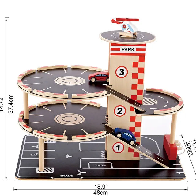 - NEVER ENDING FUN: The wooden toy playset will keep your kid busy for hours as they steer their toy cars up and down the ramp, and fly the helicopter on a worldly adventure