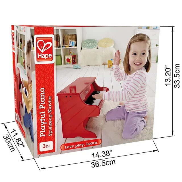 - 18-KEY PIANO WITH MUSICAL SCALE: The Hape Playful Piano Toy features eighteen kid-sized keys and a musical scale to help children learn the piano’s notes and scales