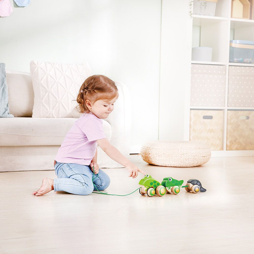 - WOODEN PULL-ALONG TOY: Take mama frog and all her little ones for a walk with this fun pull-along toy. Watch as her mouth opens and closes as you pull on the string and lead her on walks while her tiny tadpole and froglet wobble along behind