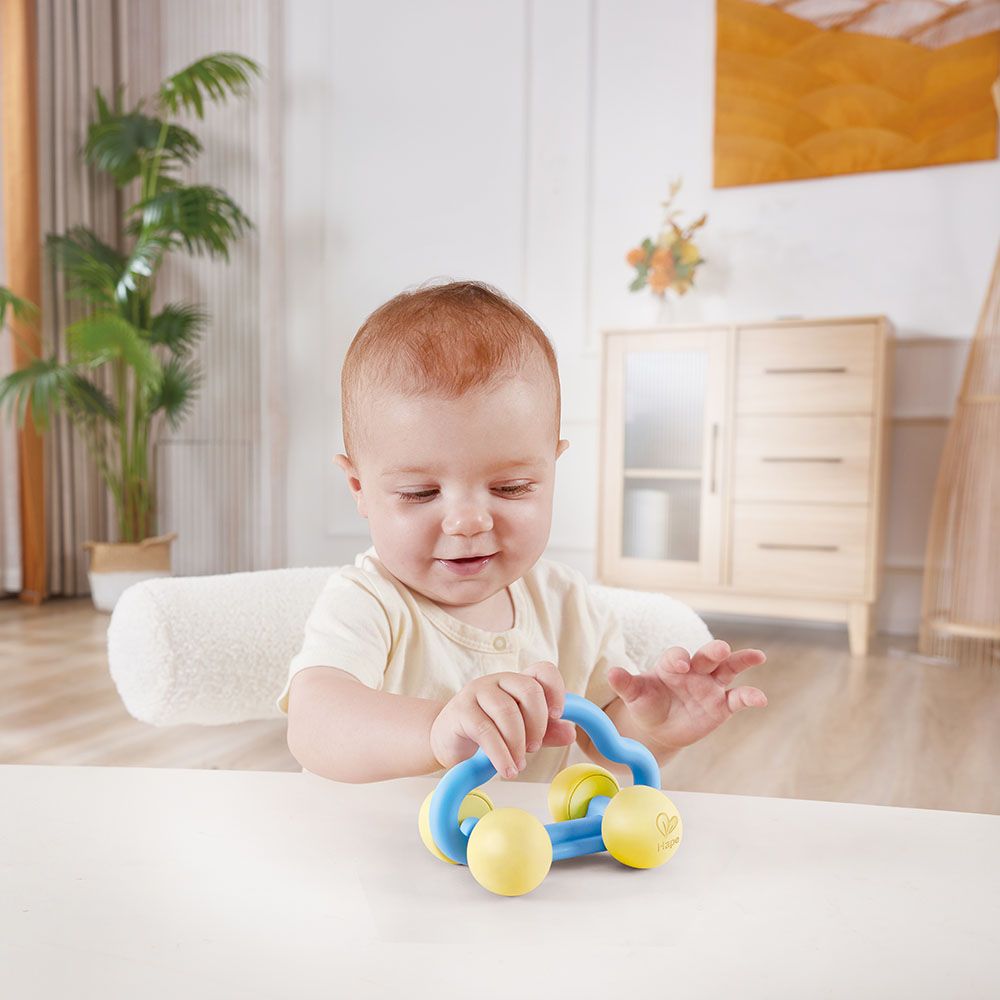 - ENGAGING RATTLE CAR TOY: Watch your baby’s eyes light up with delight as they roll their first car toy and it rattles its way down the floor. The beads inside the wheels of this beautifully designed, colorful toy provide a pleasing and sonic reward for your baby as they learn how to move the car.