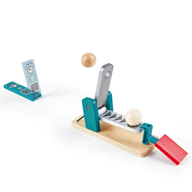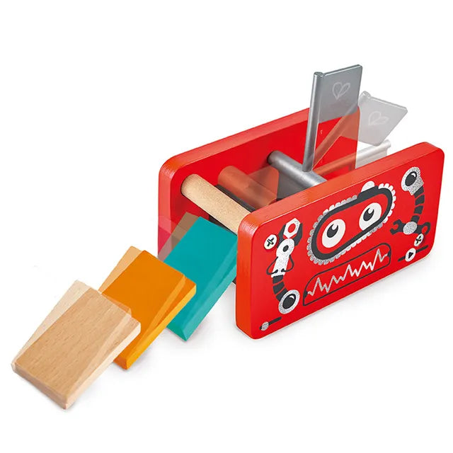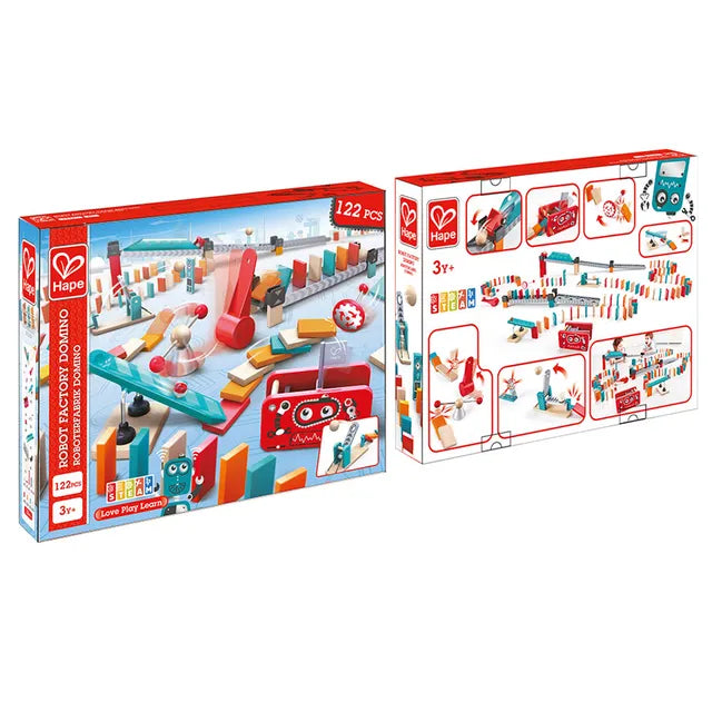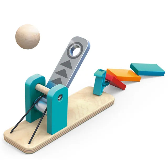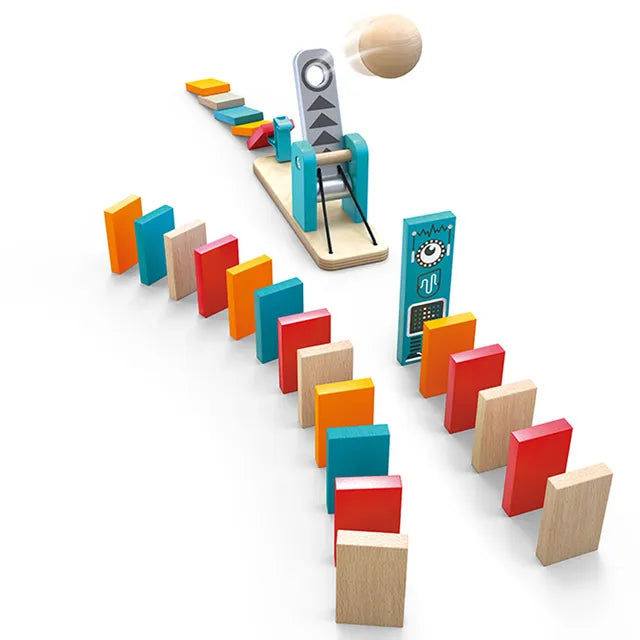 Use stored potential energy to catapult a wooden ball into the air with this exciting robot-themed domino set! A tipper car, crazy ball track, tipper arm and series of ramps form an exciting robot production line that you can build again and again.