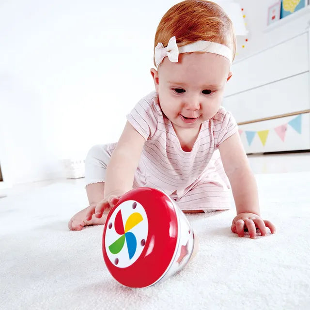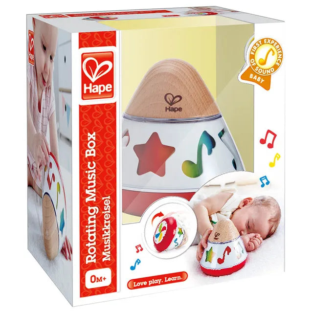 - WIND-UP AND SPIN FOR SOOTHING MUSIC: The Hape Rotating Music Box features a simple wind-up mechanism; twist the red base to let it spin on its base or side, releasing gentle and soothing melodies to comfort young children.