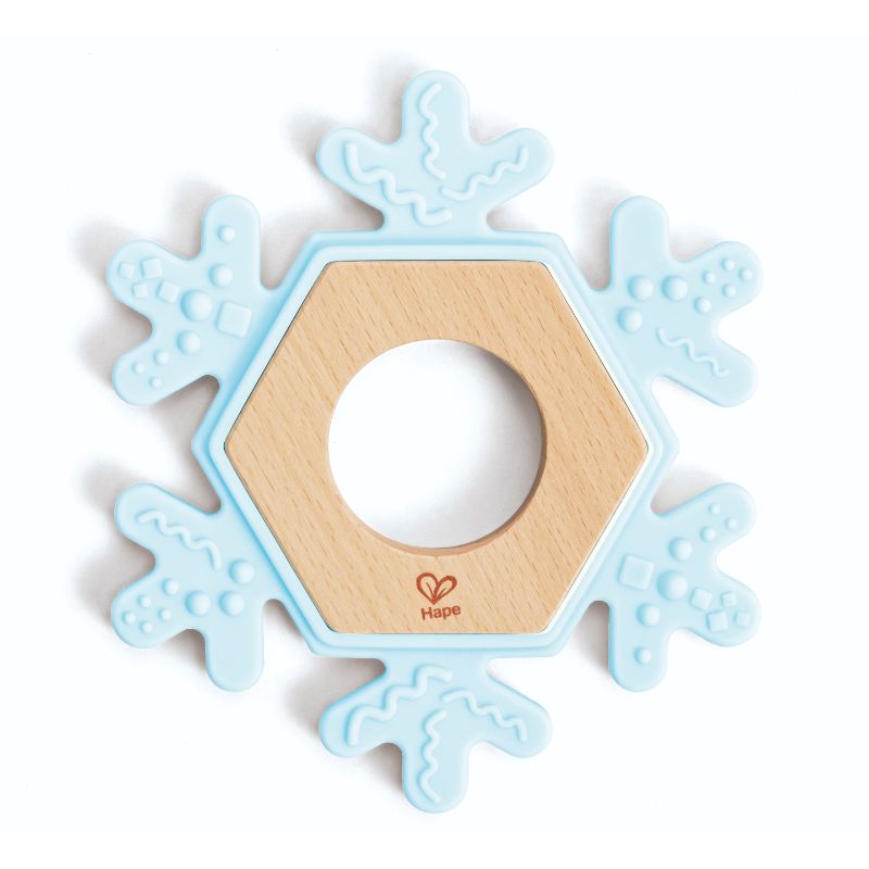 Hape Snowy Teether BPA-free Silicone Snowflake Toy, 0M+, Teething Toy for Baby, Baby Toy Gifts, Baby Shower Gifts, Gentle Massage and Relief to the Baby`s Gums, Infant Sore Gums Pain Relief