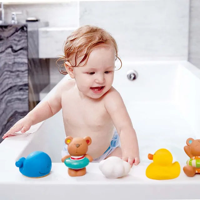 - AGE RECOMMENDATION: The Hape Teddy and Friends Bath Squirts are perfect for kids 0 months and up