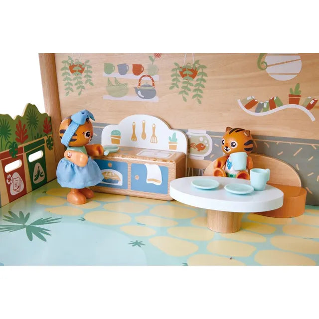 Hape Tigers’ Jungle House | Two-Level Wooden Dollhouse Play Set | Eco-Friendly Materials | Encourages Role Play & Imagination | Playset For Toddlers