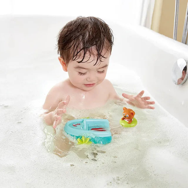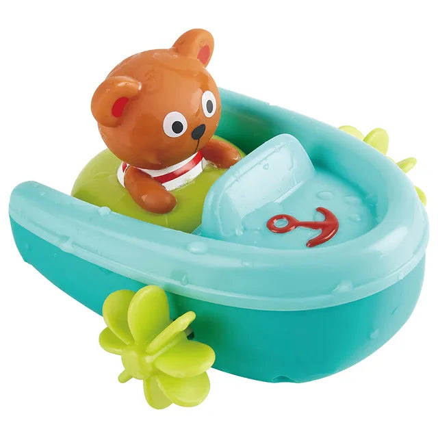 - BATH TIME FUN: Turn your bath into a lake or ocean for water sports with this exciting speedboat complete with an adorable tubing bear! Pull the bear back on his string and watch him ski in his tube until he reaches the boat safely