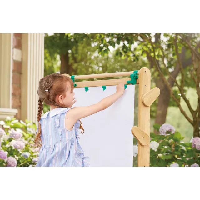 Experience the wonders of nature with Hape`s wooden outdoor easel. Perfect for outdoor creativity, this sturdy easel is a must-have for budding artists on their artistic adventures.