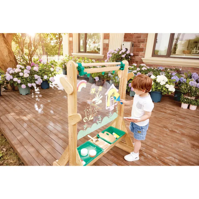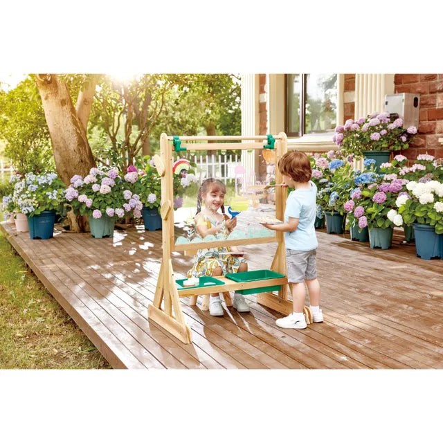 Hape Wooden Double-sided Classic Outdoor Art Easel, Arts & Crafts, Easel for Kids, Standing Toddler Easel with Painting Accessories, Education Gift for Boys and Girl, FSC Toys, Compatible with Art Paper Roll, Ideal for Group Art Activity, Promotes Social Skills