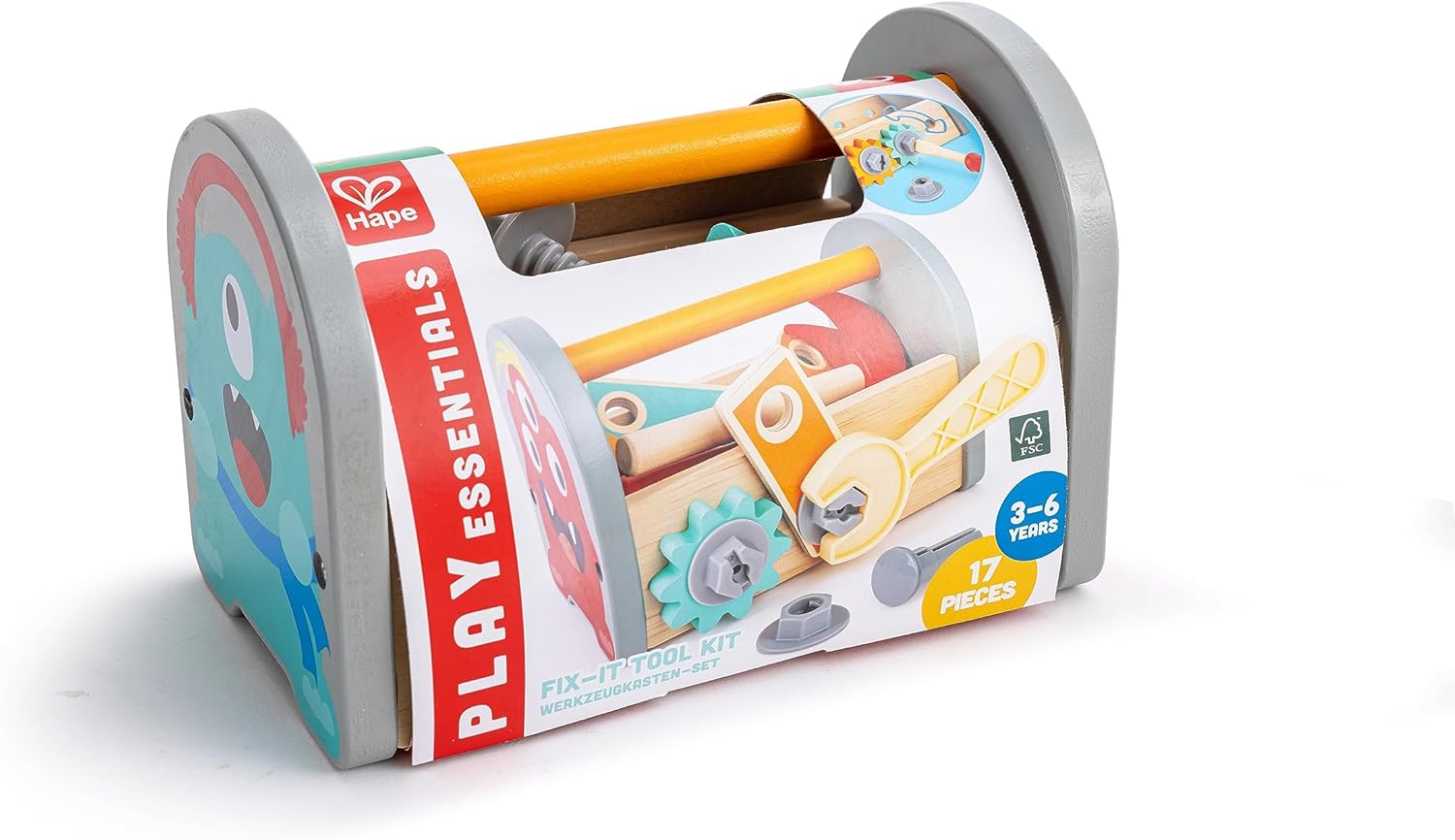Hape, Wooden Monster Fix-It Toolbox Kit 17pcs | Tool Box For Kids | Fantastic Tool Box For Toddlers | Educational Activity Toy | Suitable For Ages 3 Years & Up
