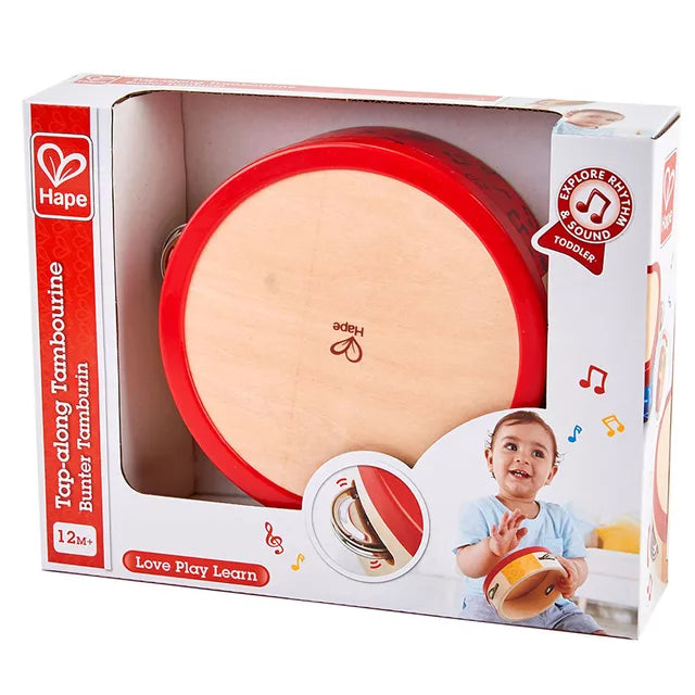 Hape Tap-along Tambourine | Wooden Tambourine Drum For kids, Musical Instrument for Children 12 Months and Up
