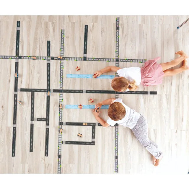 - CREATIVE ADHESIVE TAPE: Includes tape that sticks to most surfaces and peels off effortlessly, allowing for imaginative setups and play.
