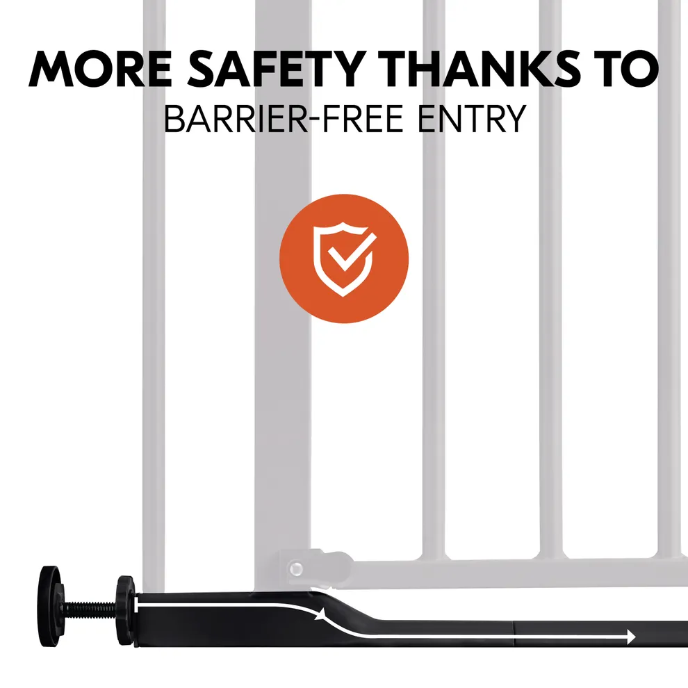 - Flat entry – no tripping hazard: thanks to the extra flat door threshold, the baby gate is well suited for stairs but also for normal passages - it can hold max. 3 mm from the floor