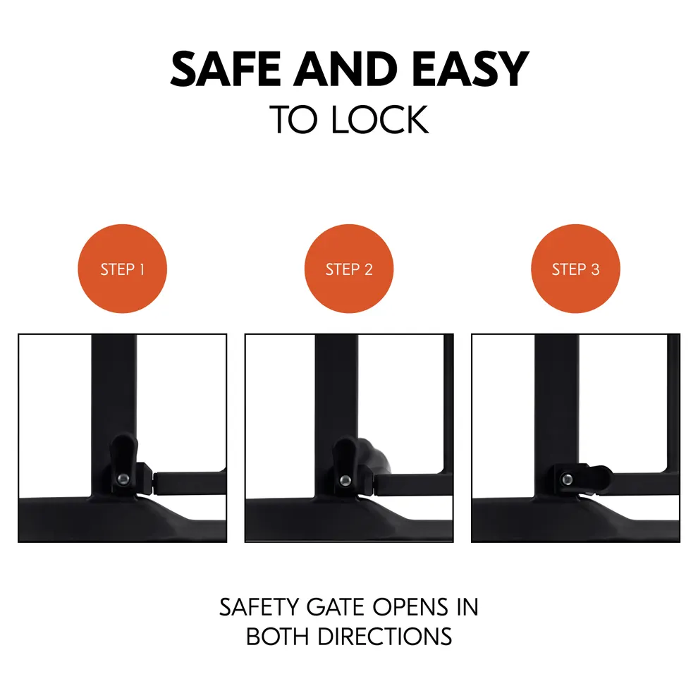 - Easy to open with one hand: the door safety gate can be opened in both directions and also closed again - convenient and safe in everyday life - easily lift the door and push back the safety lock
