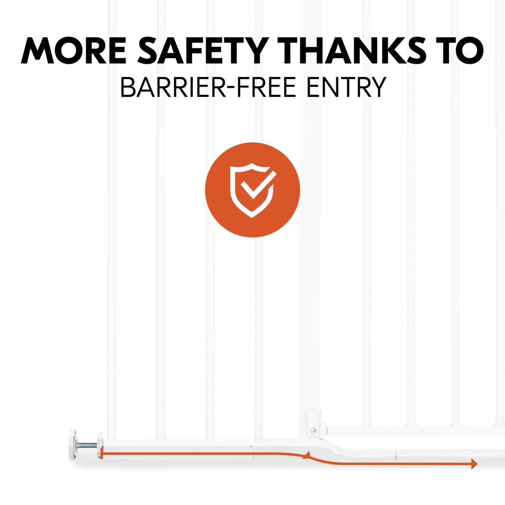 - ULTRA FLAT TRIP-PROOF BASE The flat floor rail reduces the risk of tripping, so the kids gate is ideal for parents, children and grandparents, especially for use at the top of stairs