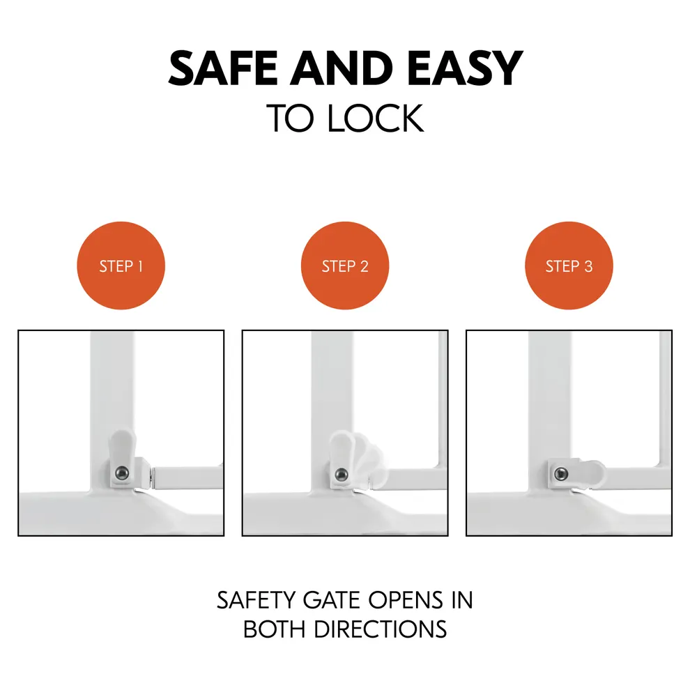 With just one hand, the hauck door safety gate can be opened and closed in both directions - simply push back the safety latch and lift it slightly - ideal if you have your child or the laundry basket on your arm.