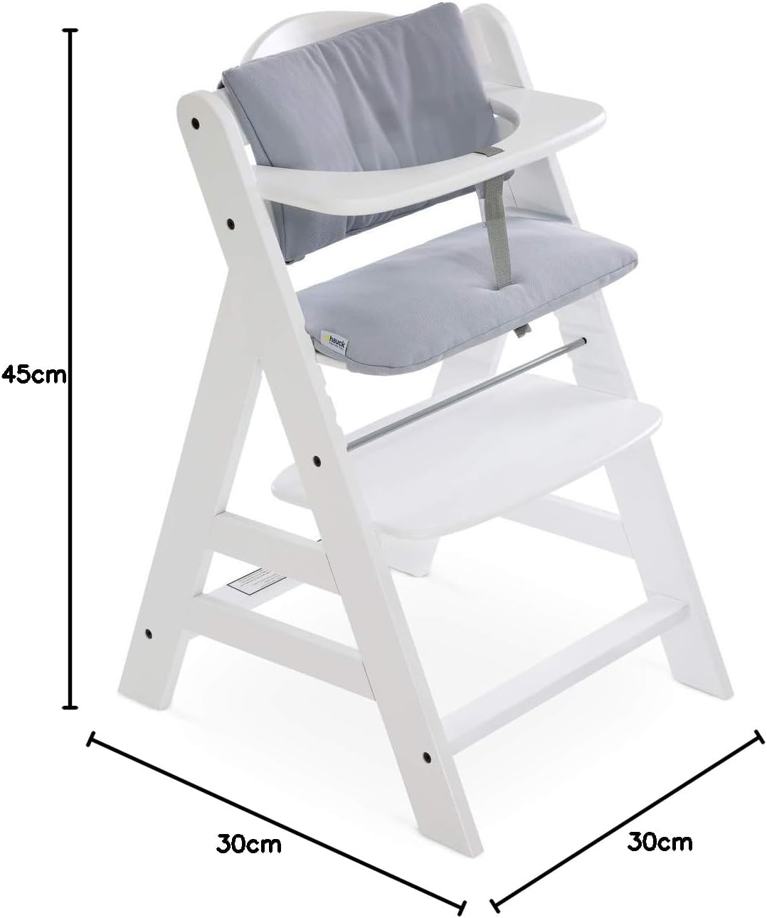 You can attach this two-piece seat cushion to the high chair in no time at all with Velcro and remove it just as easily for washing.