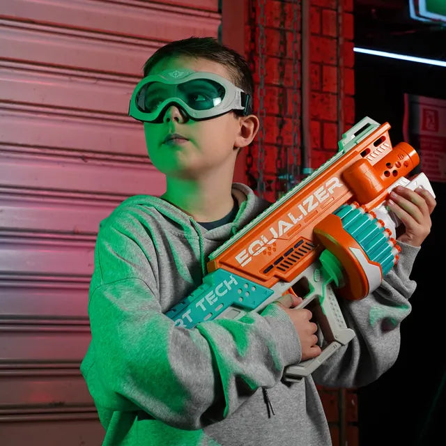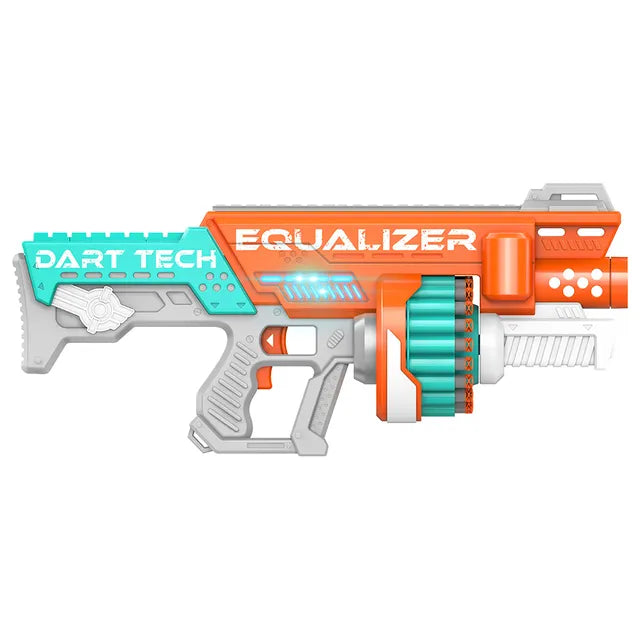 - Upgrade your blaster game with the Dart Tech Equaliser!,This fully motorised blaster has a 20 dart rotating barrel to overpower your targets