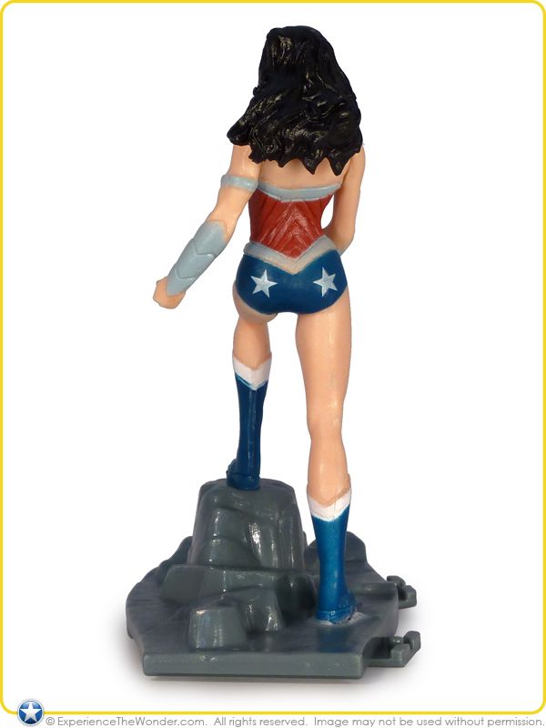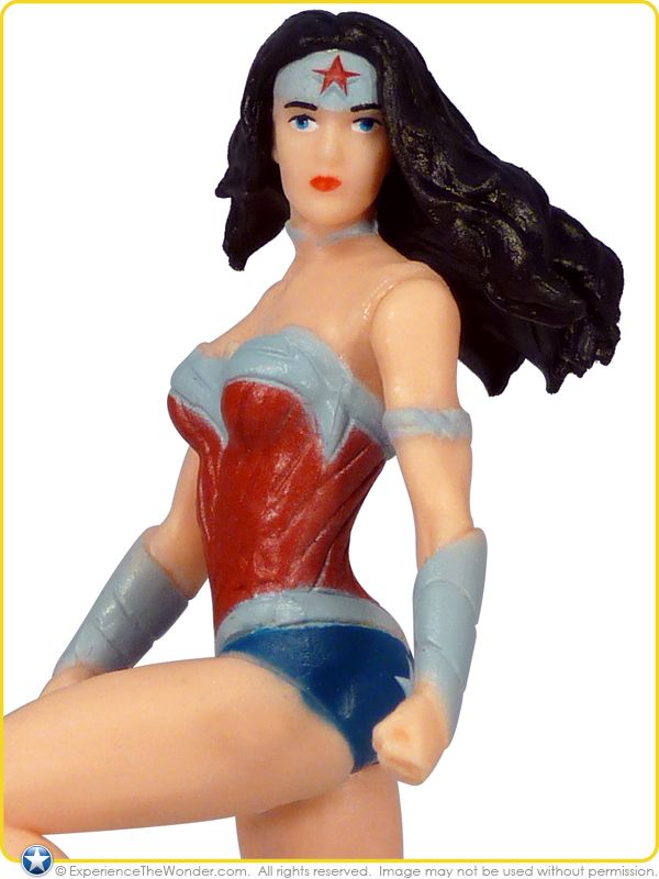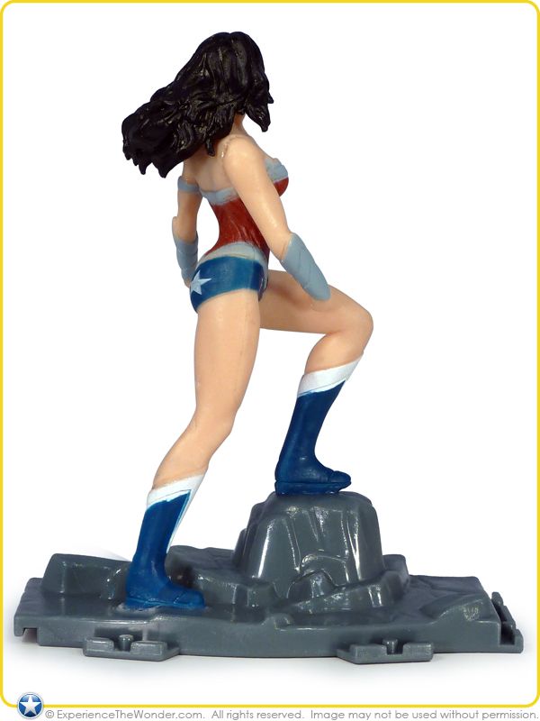 Modern Age Wonder Woman PVC figurine with imprinted details mounted on a gray plastic diorama style base which connects to other figure bases in the series.