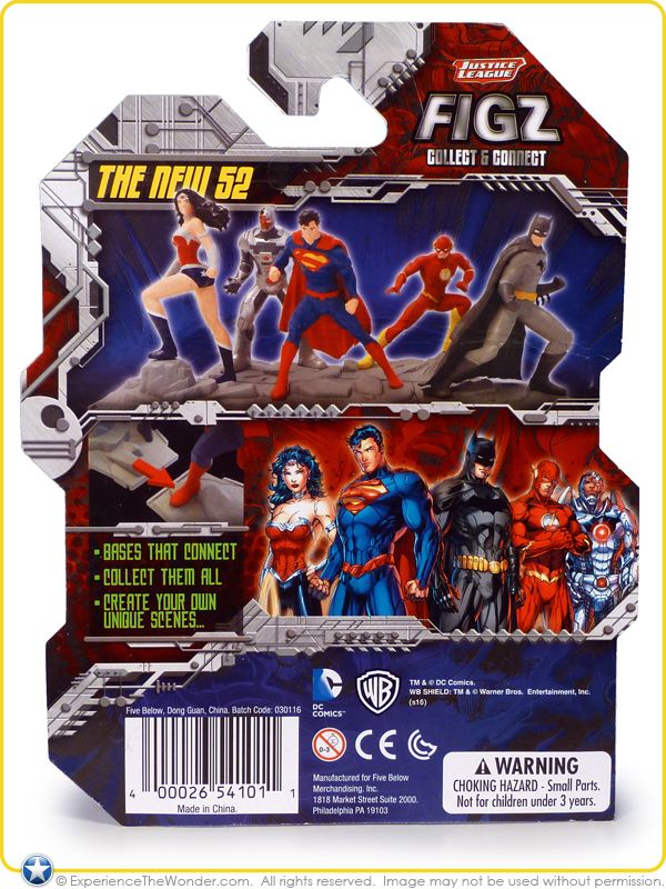 Wonder Woman is one of five (5) mini figurines featuring Justice League characters including Superman, Batman, The Flash, and Cyborg.