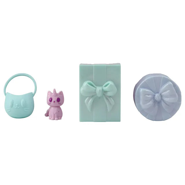 Is Diana dressed as a Kitty or is she a vet? Why not both. Open up Diana's hat box and shoe box to reveal her mashup outfit. Watch as Diana transforms from her vet outfit to a beautiful Kitty outfit. You can style Diana's hair with the hairbrush. The handle on the box also becomes a colorful bracelet for you.