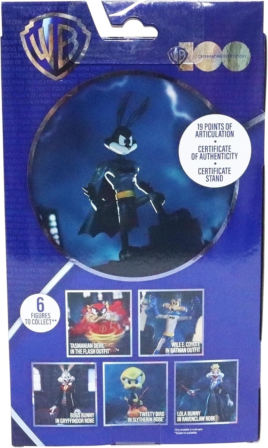This collection features a unique combination of characters from the world of Bugs Bunny and Batman, resulting in fun figures that are sure to delight fans of both franchises. Each figure stands at 6inches tall and is carefully designed to capture the essence of both Bugs Bunny and Batman characters. The collection includes popular characters such as Bugs Bunny dressed as Batman. Perfect for collectors or for imaginative play for children who love both Bugs Bunny and Batman.