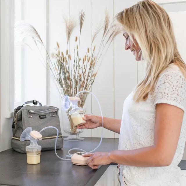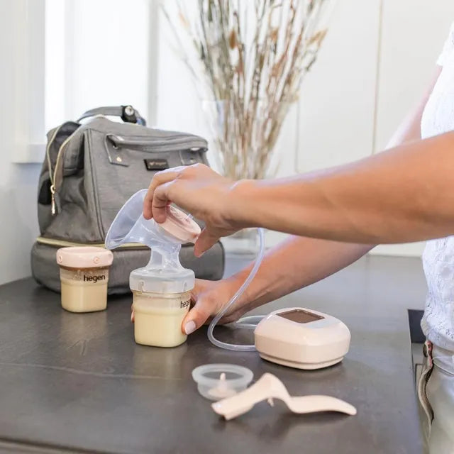Featuring all new silicone SoftSqround flanges, the Hegen Double Electric Breast Pump is a portable breast pump with hospital grade suction strength perfect for mothers beginning their breastfeeding journey. Use it as a single or double pump to express and store breast milk directly into our Hegen breastmilk storage containers, minimising the transfer of precious milk, making every drop count. Research has shown that massaging your breasts before pumping increases the breastmilk output and a mum who is relaxed and calm when pumping produces a better quality of milk. Standing out from other brands, our pump is the worlds first relaxation electric breast pump designed for comfort and efficiency.