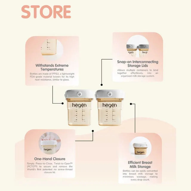- World's first patented no screw thread closure; the Hegen PresstoClose, TwisttoOpen(PCTO) innovation allows the bottle to be pressed on and twisted off conveniently with zero spillage.