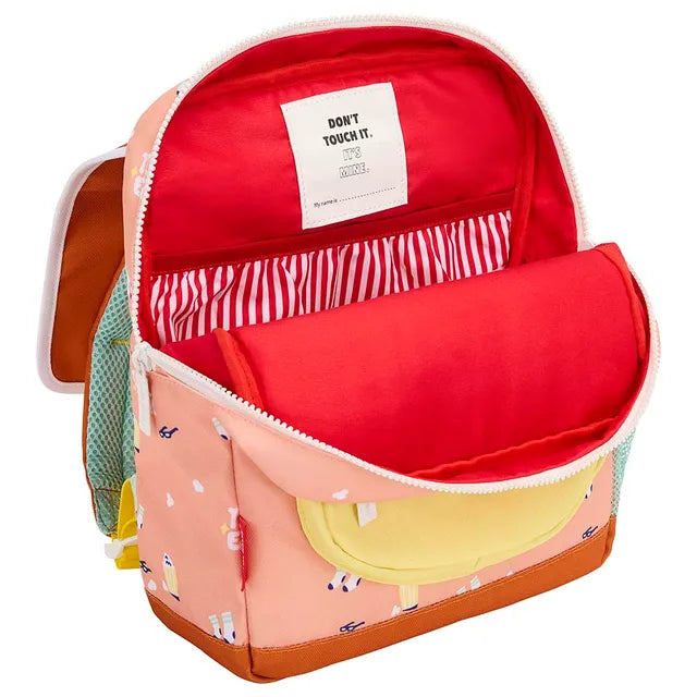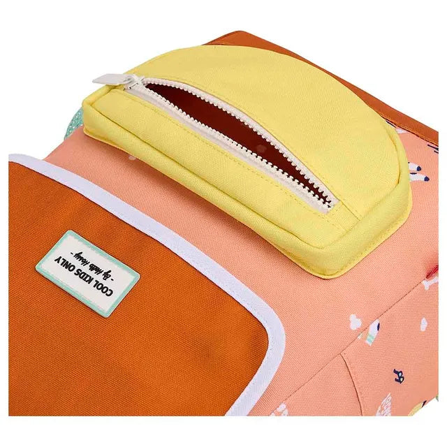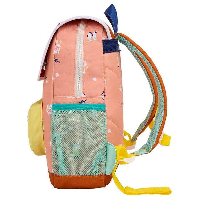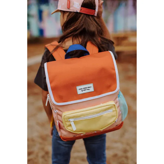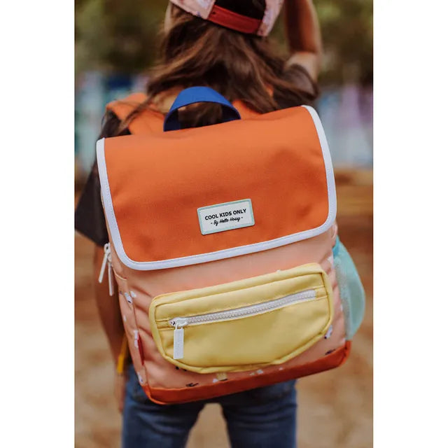 This cool backpack from Hello Hossy will be a real hit. The bag is made of water-repellent fabric, has adjustable, padded handles and an adjustable chest clip, a large inside pocket for storage, one front pocket with zipper and an external pocket for water bottles. Whether it's for the playground or school, this is the most stylish bag for every adventure. , , Capacity : can hold an A5 size notebook. , Weight : 250g , Volume : 7.3L , The bag is a real pleasure to look at. Its funky big print format, with nice details, will please the kids. Your kids will be the envy of school and weekend/holiday outings. You'll make someone happy! , Eco-responsible: Bags made from recycled plastic bottles.