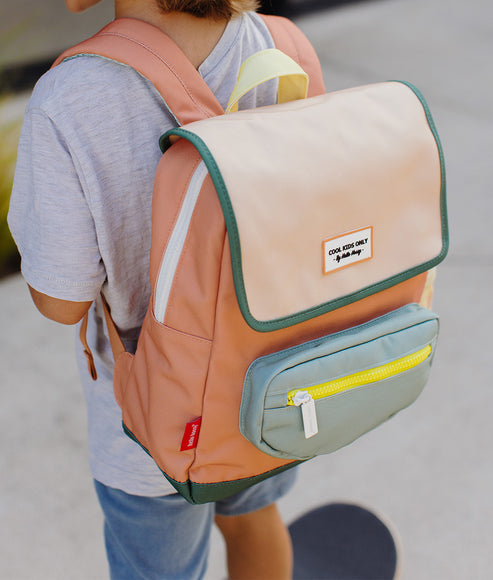 This cool backpack from Hello Hossy with the trendy square shape will be a real hit. The bag is made of water-repellent fabric, has adjustable, padded handles and an adjustable chest clip, a large inside pocket for storage, one front pocket with zipper and an external pocket for water bottles. Whether it's for the playground or school, this is the most stylish bag for every adventure.