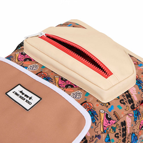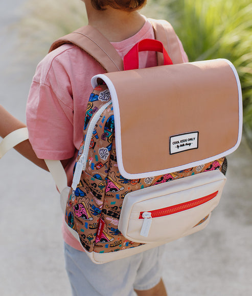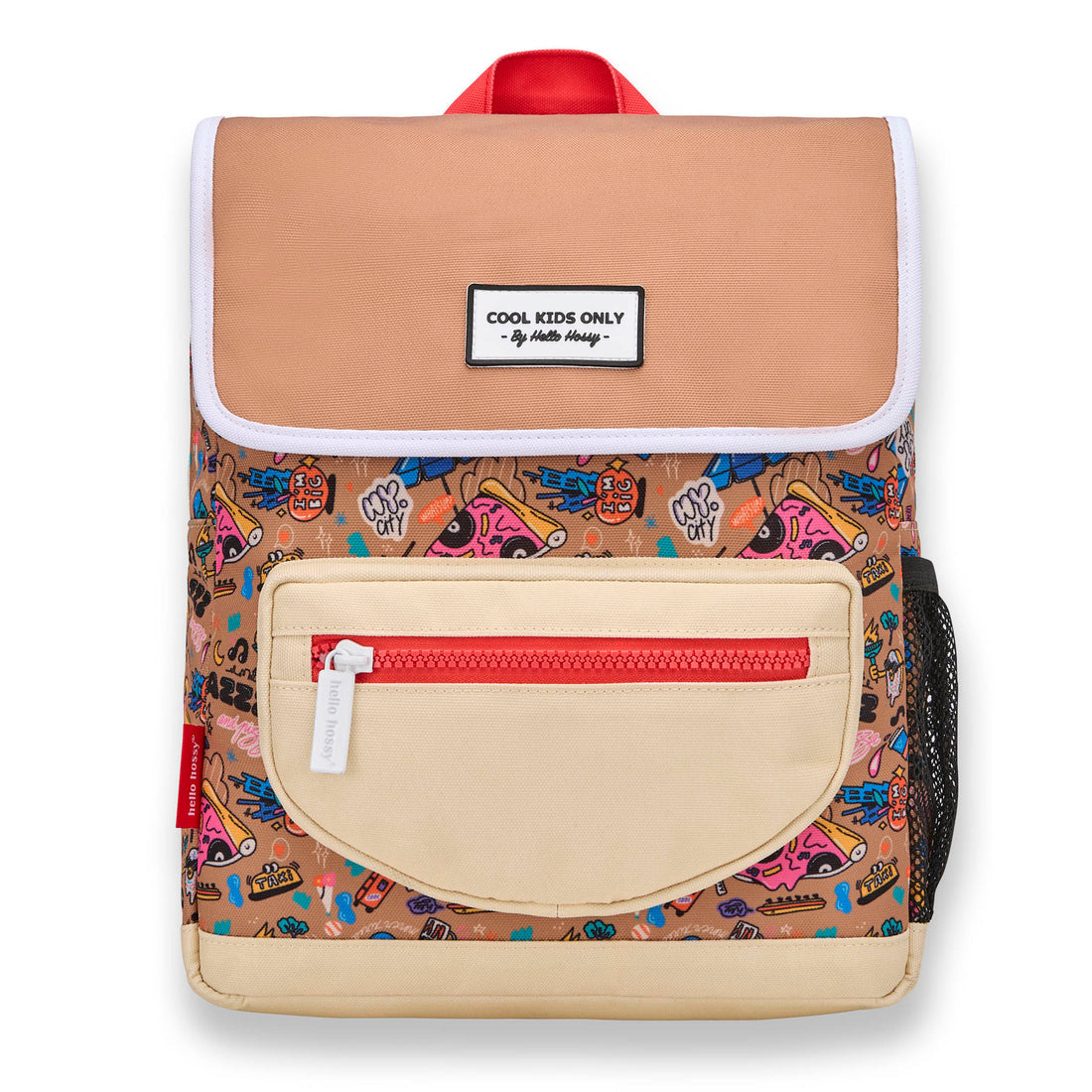 This cool backpack from Hello Hossy with the trendy square shape will be a real hit. The bag is made of water-repellent fabric, has adjustable, padded handles and an adjustable chest clip, a large inside pocket for storage, one front pocket with zipper and an external pocket for water bottles. Whether it's for the playground or school, this is the most stylish bag for every adventure.