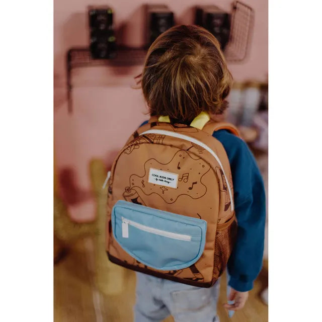This cool backpack from Hello Hossy will be a real hit. The bag is made of water-repellent fabric, has adjustable, padded handles and an adjustable chest clip, a large inside pocket for storage, one front pocket with zipper and an external pocket for water bottles. Whether it's for the playground or school, this is the most stylish bag for every adventure. , , Capacity : can hold an A5 size notebook. , Weight : 250g , Volume : 7.3L , The bag is a real pleasure to look at. Its funky big print format, with nice details, will please the kids. Your kids will be the envy of school and weekend/holiday outings. You'll make someone happy! , Eco-responsible: Bags made from recycled plastic bottles.