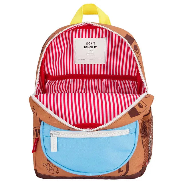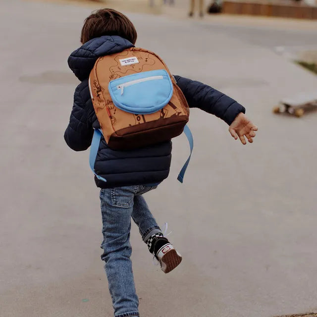 This cool backpack from Hello Hossy will be a real hit. The bag is made of water-repellent fabric, has adjustable, padded handles and an adjustable chest clip, a large inside pocket for storage, one front pocket with zipper and an external pocket for water bottles. Whether it's for the playground or school, this is the most stylish bag for every adventure. , , Capacity : can hold an A5 size notebook. , Weight : 500g , Volume : 7.3L , The bag is a real pleasure to look at. Its funky big print format, with nice details, will please the kids. Your kids will be the envy of school and weekend/holiday outings. You'll make someone happy! , Eco-responsible: Bags made from recycled plastic bottles.