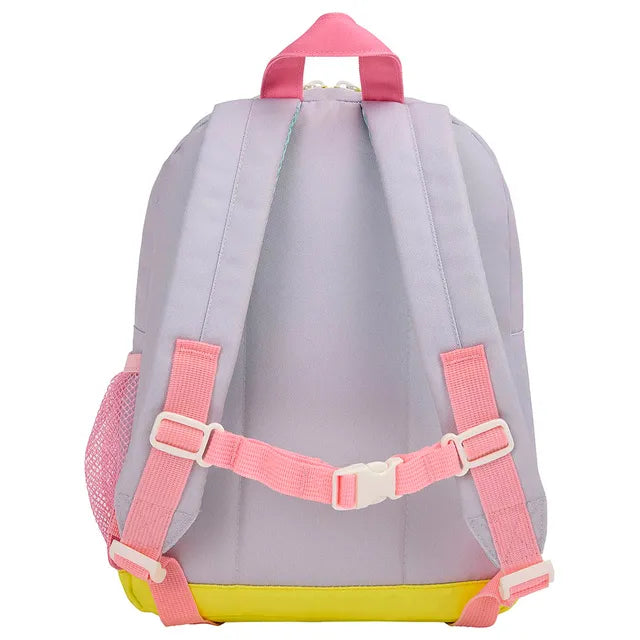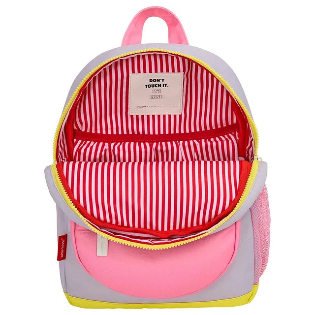 This cool backpack from Hello Hossy will be a real hit. The bag is made of water-repellent fabric, has adjustable, padded handles and an adjustable chest clip, a large inside pocket for storage, one front pocket with zipper and an external pocket for water bottles. Whether it's for the playground or school, this is the most stylish bag for every adventure. , , Capacity : can hold an A5 size notebook. , Weight : 250g , Volume : 7.3L , The bag is a real pleasure to look at. Its funky big print format, with nice details, will please the kids. Your kids will be the envy of school and weekend/holiday outings. You'll make someone happy! , Eco-responsible: Bags made from recycled plastic bottles.