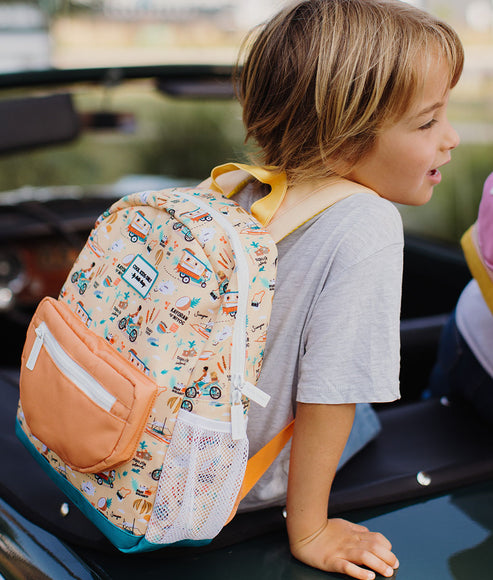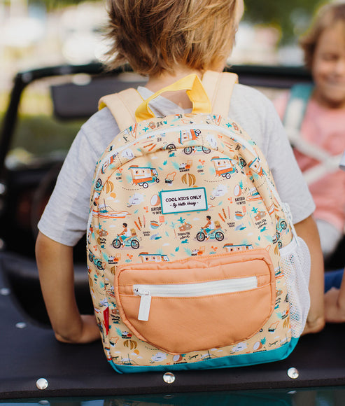 This cool backpack from Hello Hossy will be a real hit. The bag is made of water-repellent fabric, has adjustable, padded handles and an adjustable chest clip, a large inside pocket for storage, one front pocket with zipper and an external pocket for water bottles. Whether it's for the playground or school, this is the most stylish bag for every adventure.