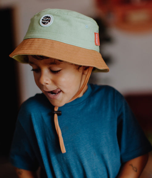 The Mini Avocado Bucket Hat for children and babies is a unisex bucket hat. An eco-friendly bucket hat made from organic, Oeko-Tex certified cotton. This color block bucket hat will be perfect for Cool Kids on weekends and during sunny vacations 🌞 Available in three sizes, from 9 months of age.