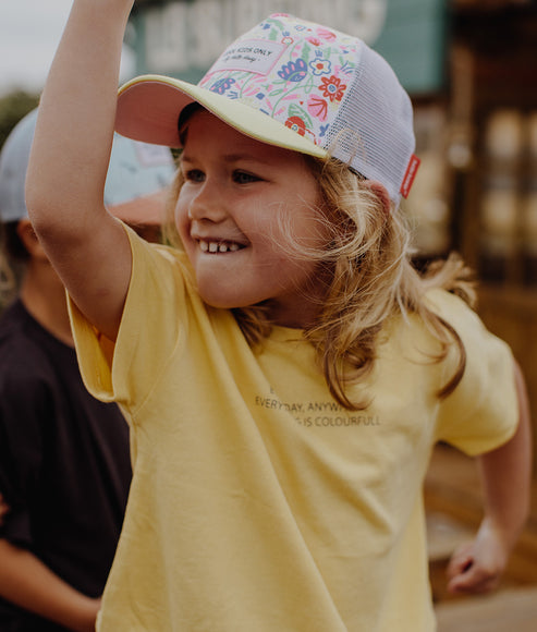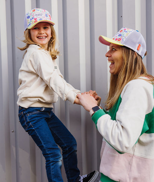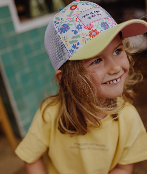 The Garden Party Trucker Cap for children and babies is one of Hello Hossy®'s most popular caps! It goes perfectly with the backpack with the same name and pattern. Colorful cap for children, curved brim cap, a great gift for the summer. Pattern: Flowers!
